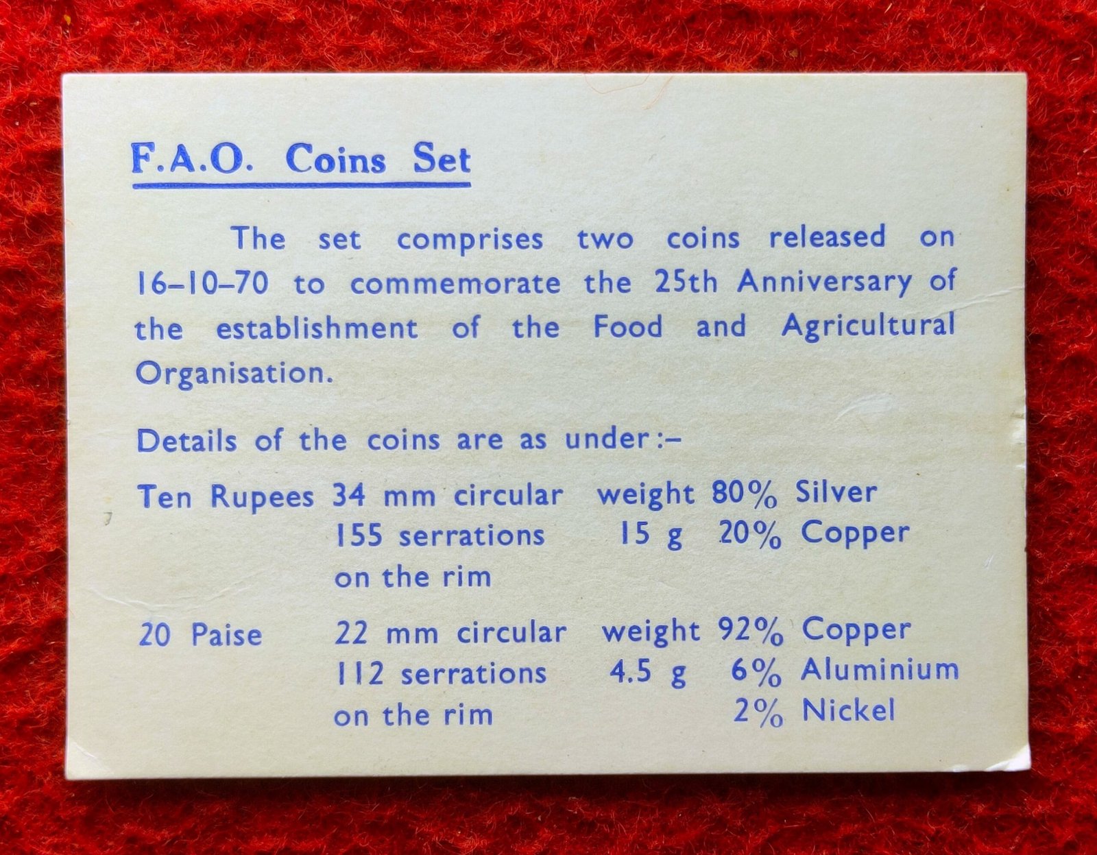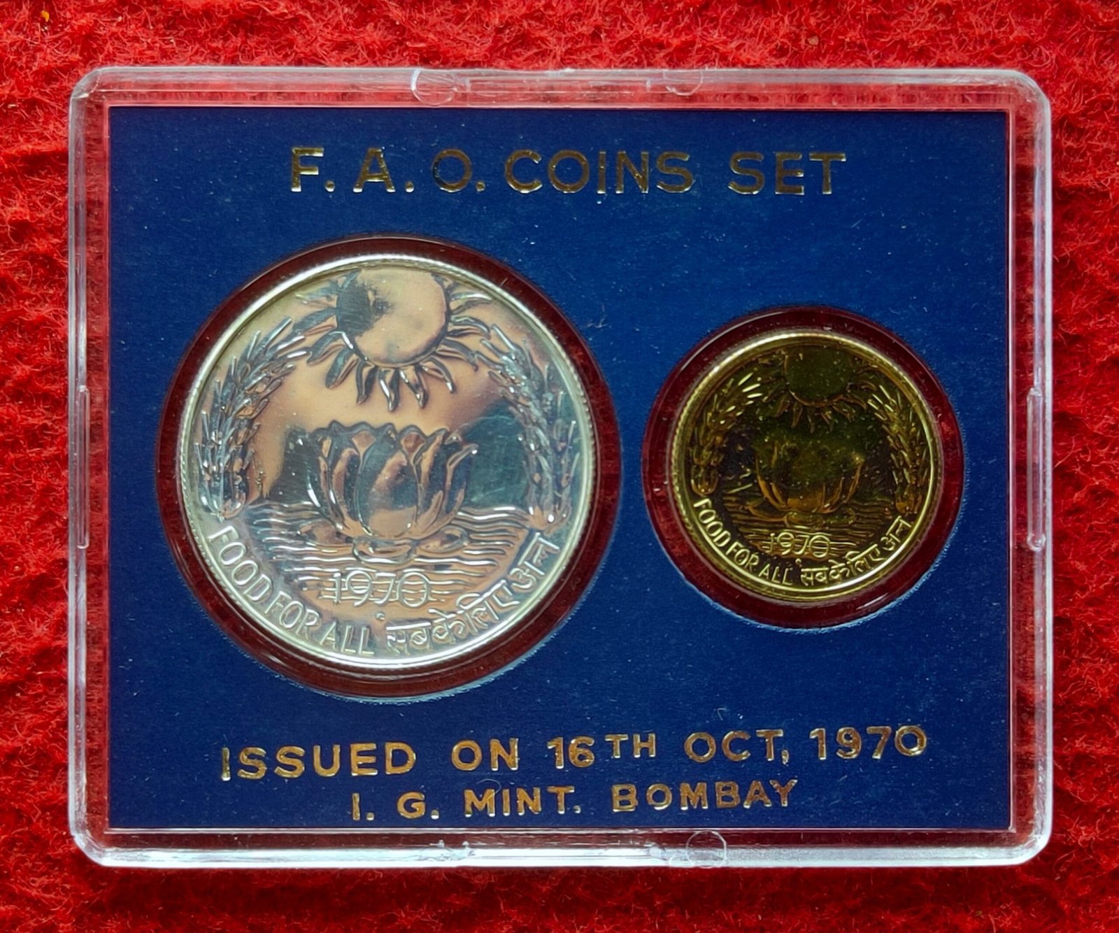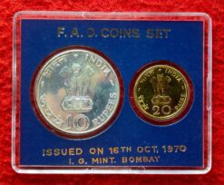 1970 – Food For All UNC 2 Coins Set (Rs.10, Ps.20) Bombay Mint