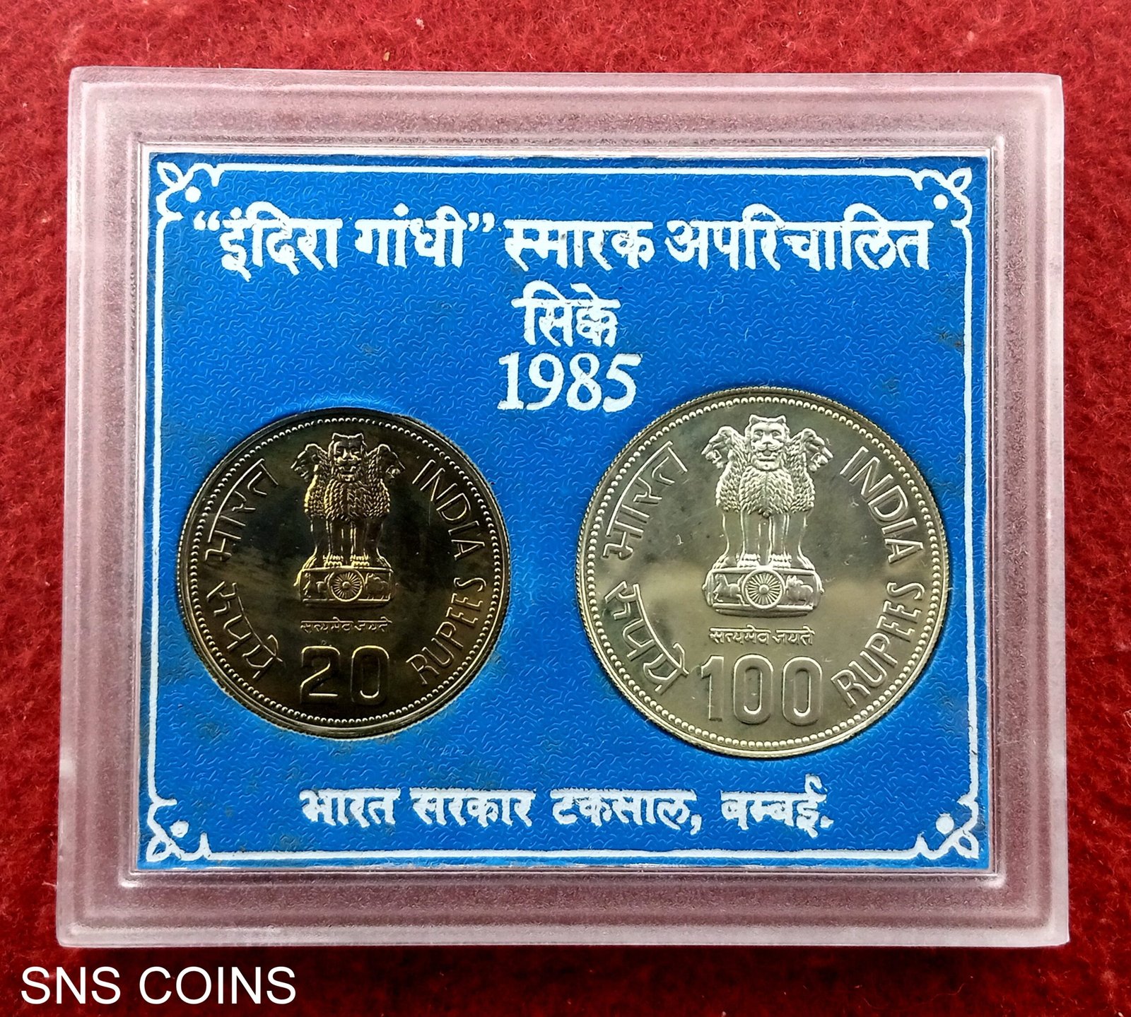 1985 – Indira Gandhi (Bombay) UNC 2 Coins Set (Rs.100, Rs.20)